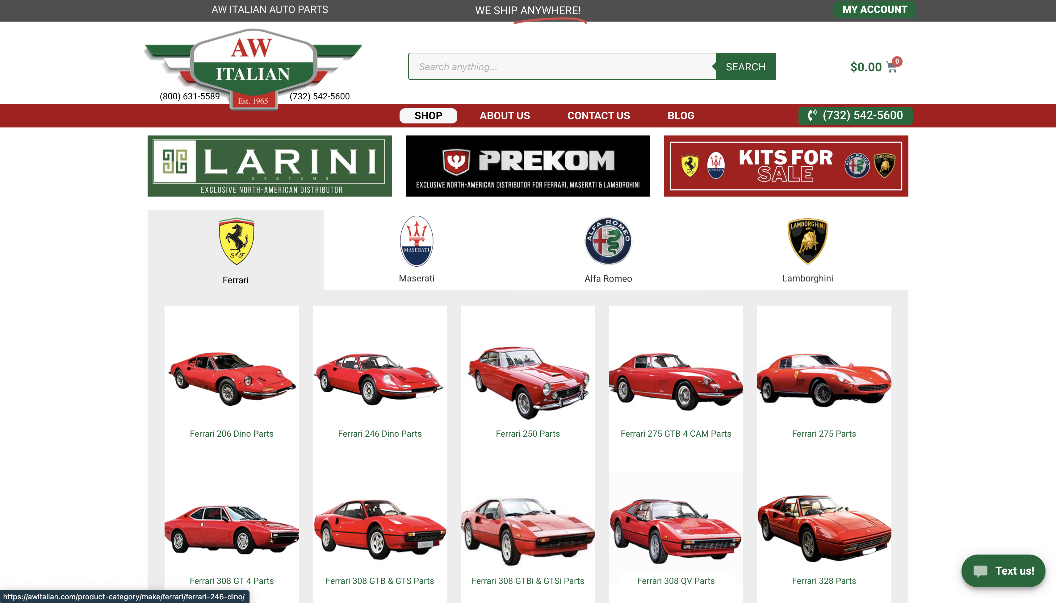 AW Italian – це онлайн-магазин, що спеціалізується на оригінальних запчастинах для італійських спортивних автомобілів, таких як Ferrari, Maserati, Alfa Romeo та інші. Магазин пропонує широкий асортимент високоякісних деталей для ремонту, відновлення та обслуговування автомобілів цих марок, гарантуючи, що всі запчастини відповідають стандартам виробників.