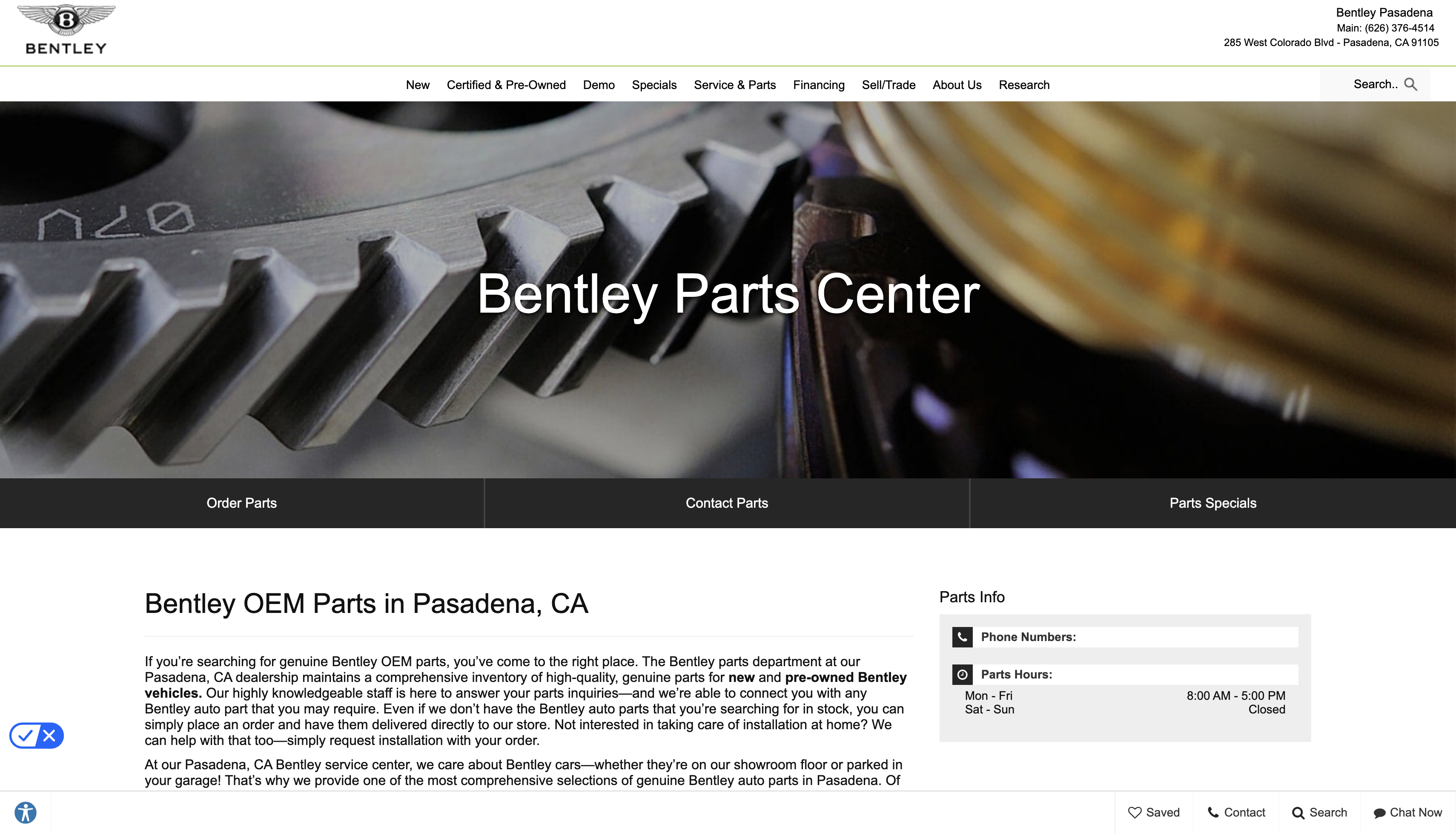 Bentley Pasadena Parts